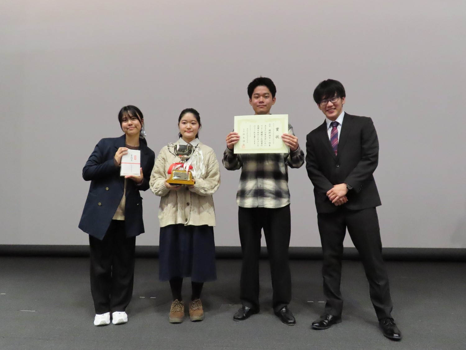 1位 岡田悠暉さん、嵩朝陽さん、中根彩嘉さん、深谷沙里さん